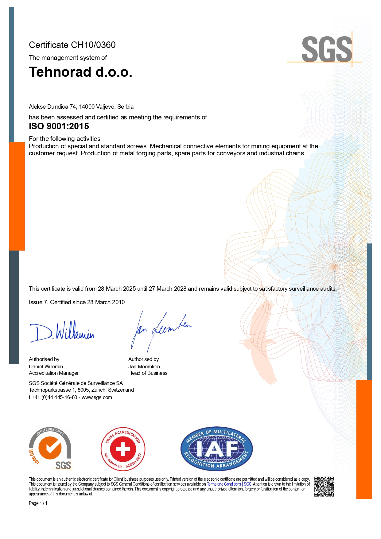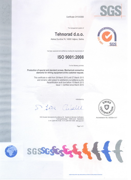potvrđuje međunarodno sertifikaciono telo SGS.