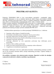 kvaliteta naših proizvoda i povećanje zadovoljstva naših poslovnih