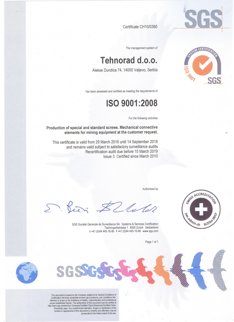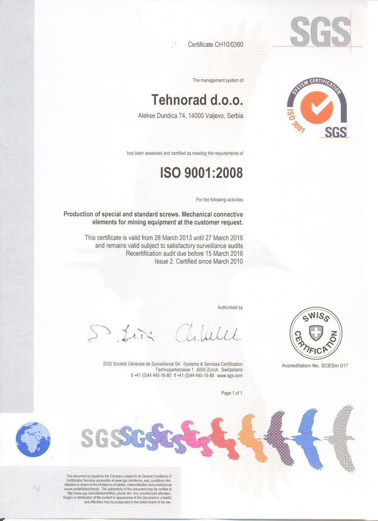 potvrđuje međunarodno sertifikaciono telo SGS.